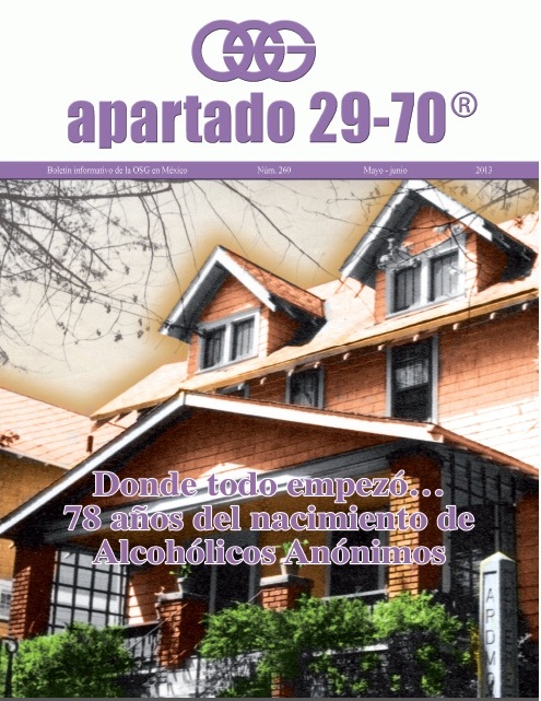 Boletín apartado 29-70 es un órgano de información y servicio a la comunidad de Alcohólicos Anónimos, publicado cada dos meses por la O.S.G. de México. Se distribuye gratuitamente a todos los grupos de Alcohólicos Anónimos que se encuentran registrados en la Central Mexicana de Servicios Generales de Alcohólicos Anónimos, A.C. Si deseas obtener una suscripción personal por un año ponte en contacto con la O.S.G.
